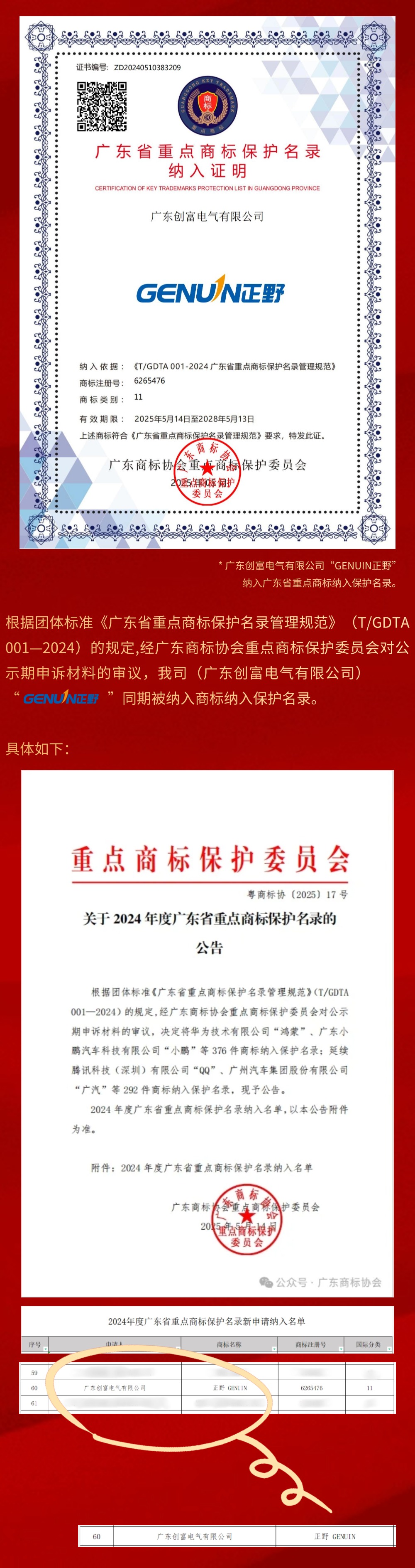 “GENUIN350vip浦京”被纳入《广东省重点商标保护名录》
